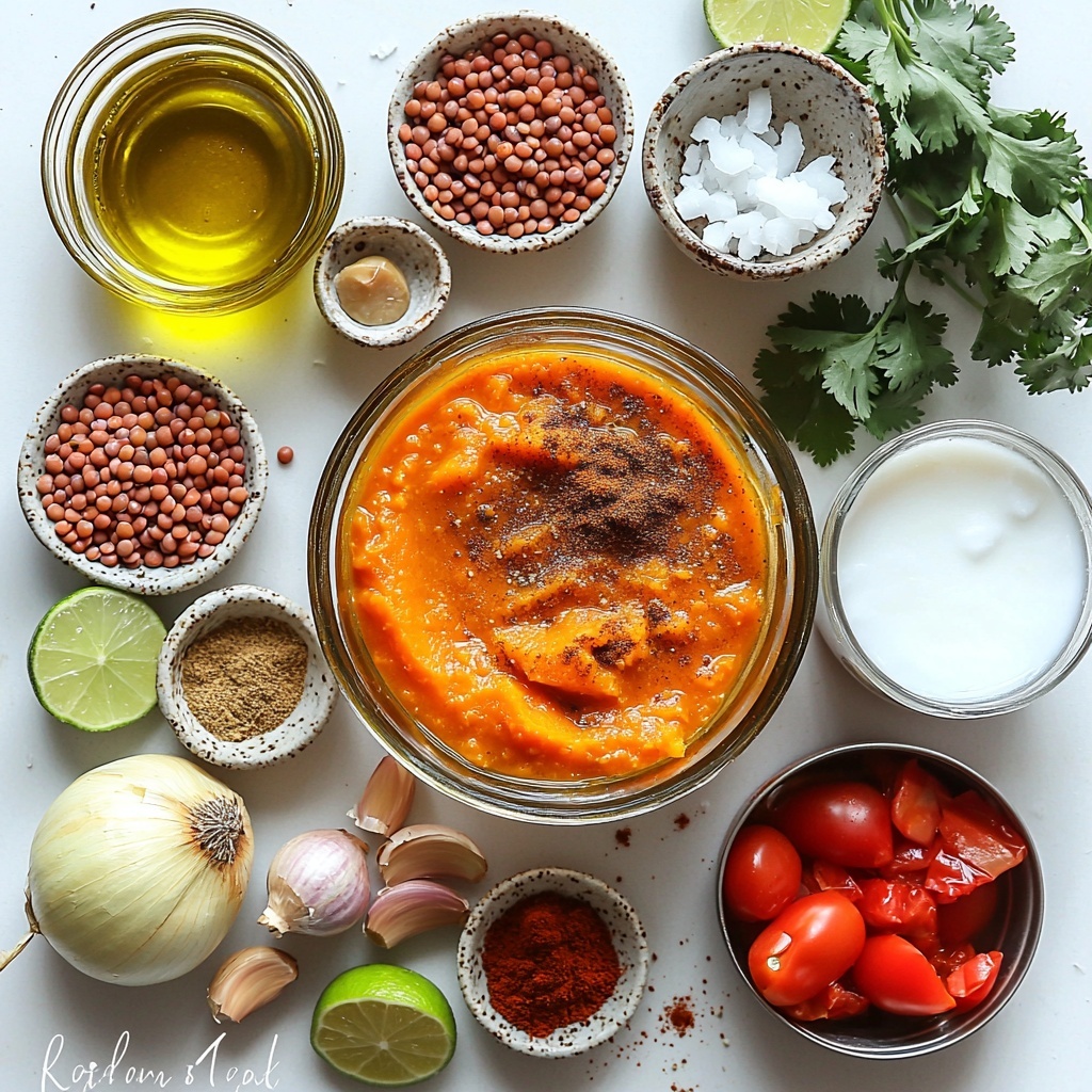 This recipe calls for simple, wholesome ingredients that come together to create an unforgettable harmony of flavors and textures. Each item plays a crucial role, adding depth, warmth, and a touch of brightness to the Spiced Pumpkin Lentil Soup Recipe.