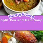 A comforting and hearty Split Pea and Ham Soup featuring tender green split peas, smoky ham hock, and fresh vegetables simmered together to create a rich, savory broth perfect for a cozy meal.