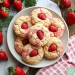These Strawberry Milkshake Cookies combine the sweetness of strawberry puree with white chocolate chips, creating soft, flavorful cookies reminiscent of a creamy strawberry milkshake. Perfectly baked to maintain a soft center with lightly golden edges, these cookies are garnished with crushed freeze-dried strawberries for an extra burst of fruity flavor and texture.