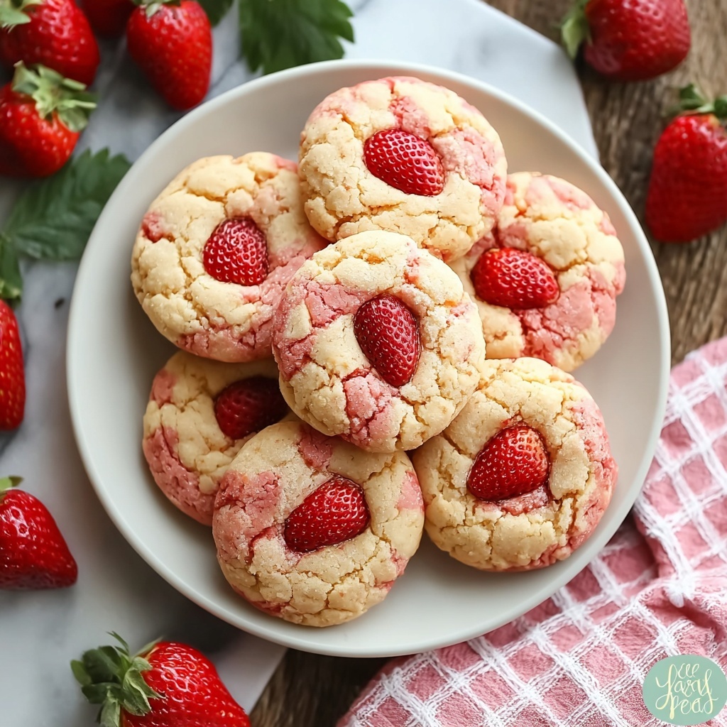 Serve these cookies alongside a tall glass of cold milk, a cup of creamy vanilla ice cream, or even a fresh fruit salad. The strawberry notes in the cookie pair wonderfully with these classic accompaniments, making each bite more enjoyable.