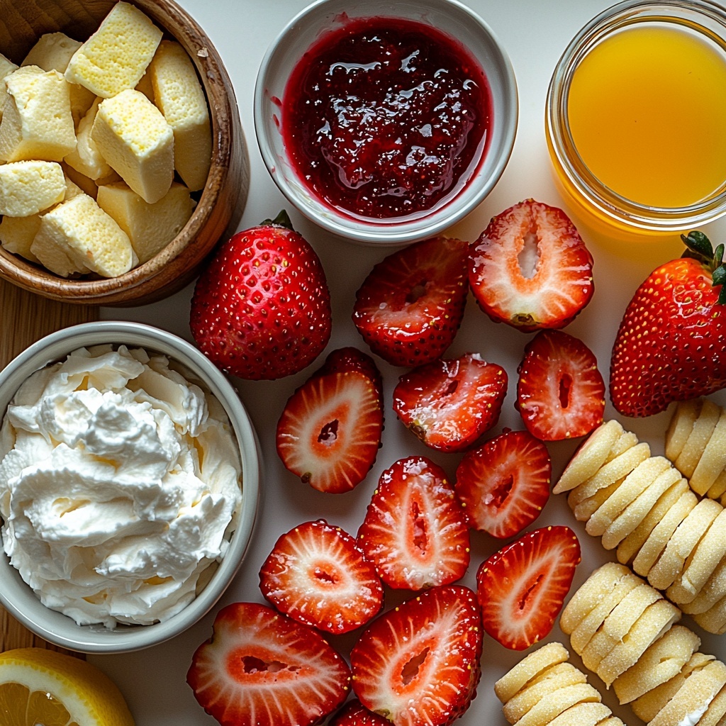 Gathering your ingredients is the first fun step toward creating this vibrant and luscious Strawberry Shortcake Tiramisu Recipe. Each component is simple but plays a crucial role: from the fresh, fragrant strawberries to the creamy mixture that brings everything together, every ingredient contributes to the perfect balance of taste, texture, and color.