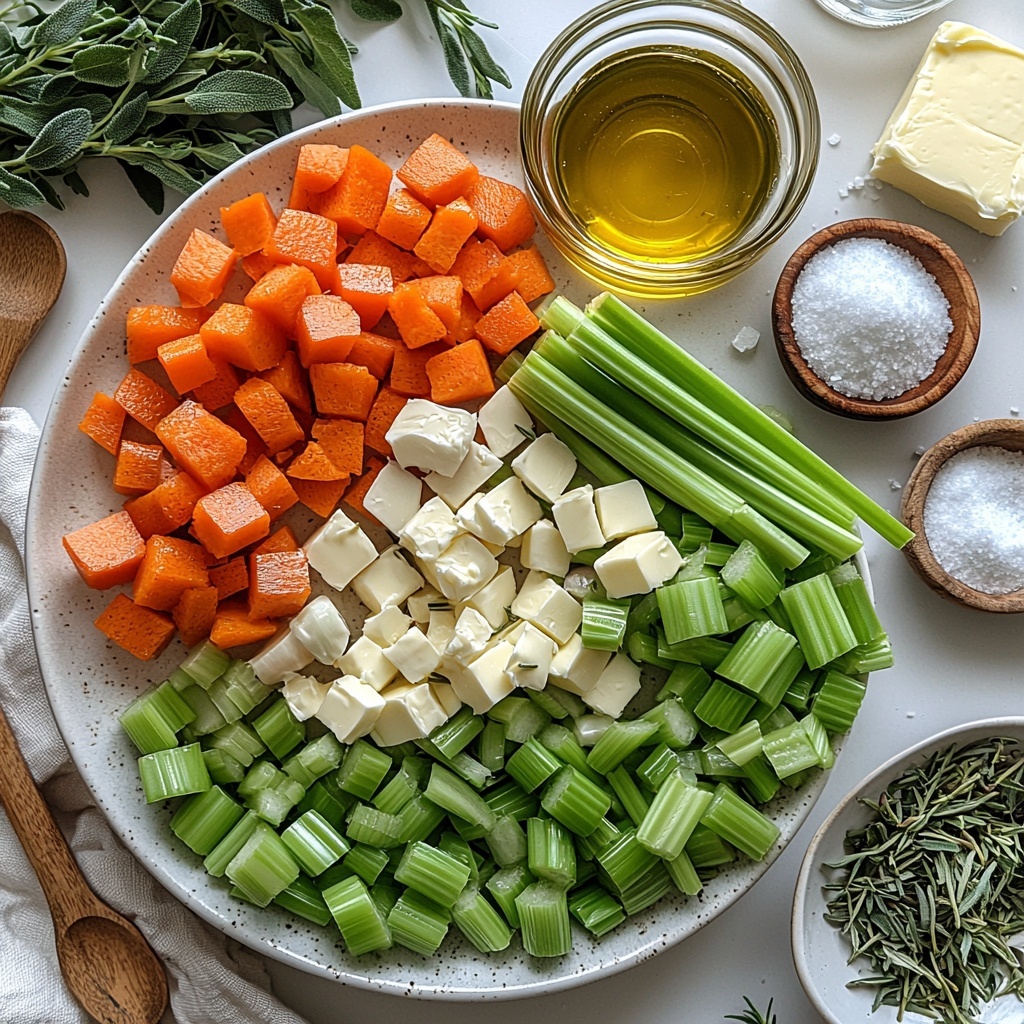 The magic of this Stuffing Biscuits Recipe comes alive through straightforward, fresh ingredients that work harmoniously to create rich texture and deep, comforting flavors. Each component—from crisp celery to aromatic fresh herbs—plays an essential role in building the biscuit’s signature profile, ensuring every bite feels like a warm hug.