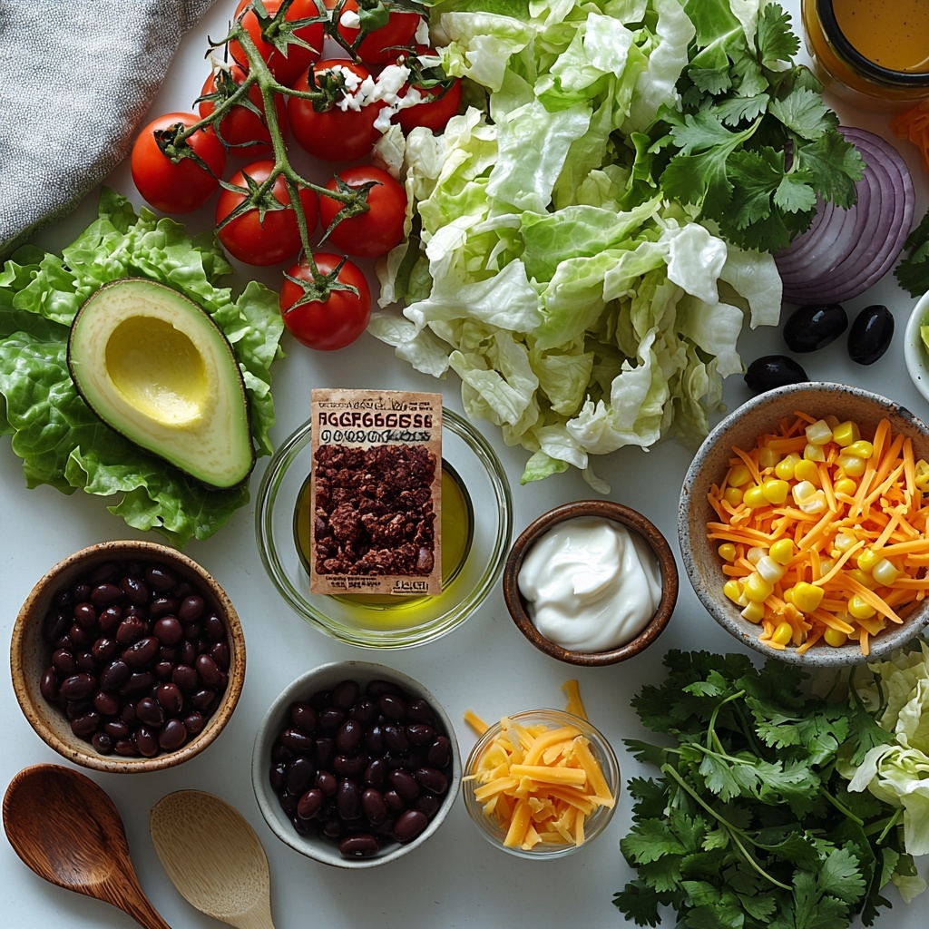 These ingredients are straightforward yet essential, each playing a vital role to create a tasty and colorful taco salad that delights both the eyes and palate.
