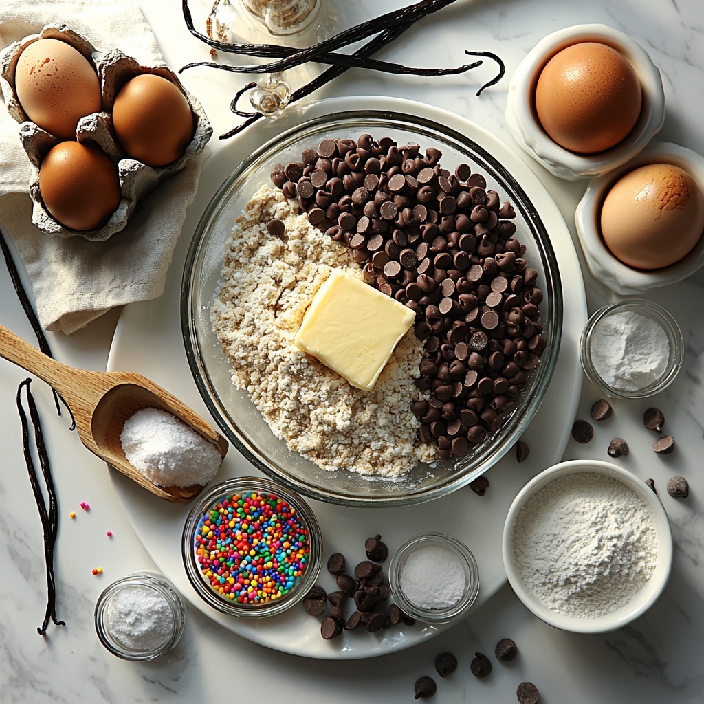 Gathering your ingredients is the first exciting step—it’s surprisingly simple, yet every item plays a star role in creating that perfect balance of flavor, texture, and appearance that makes this cookie cake truly irresistible.