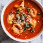 This comforting Tomato Tortellini Soup is a deliciously hearty and flavorful meal perfect for weeknights. Combining tender cheese tortellini with a rich tomato broth infused with garlic, onions, spinach, and Italian seasonings, this soup can be made quickly on the stovetop or slowly in a crockpot. Garnish with fresh basil and parmesan for an extra burst of flavor.