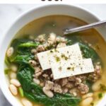 A hearty and healthy Turkey and White Bean Spinach Soup that combines tender ground turkey, creamy cannellini beans, and fresh spinach in a savory chicken broth. This comforting soup is perfect for a nutritious weeknight meal and topped with shaved Parmesan for a delicious finish.