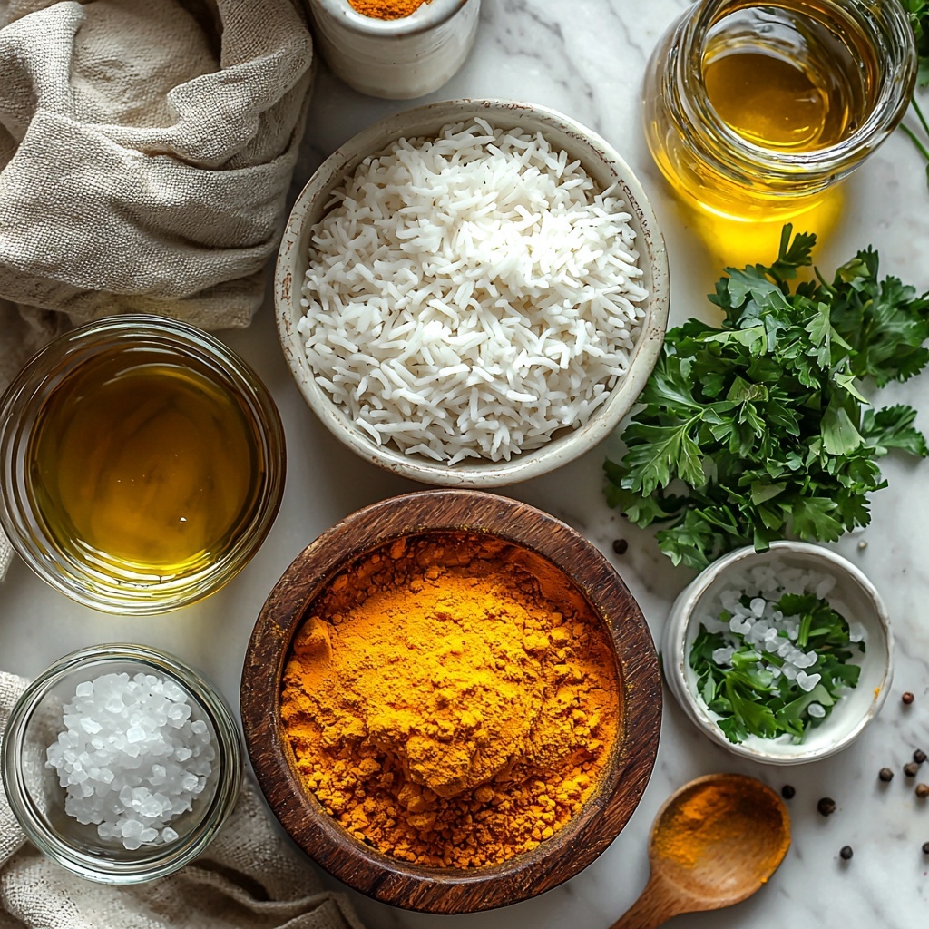 The beauty of this Turmeric Rice Recipe: 5 Irresistible Ways to Delight Your Meal Recipe lies in its simplicity. Each ingredient is straightforward but essential, balancing flavor, texture, and that signature golden hue that turmeric brings. Together, these components create a dish that’s both comforting and exciting.