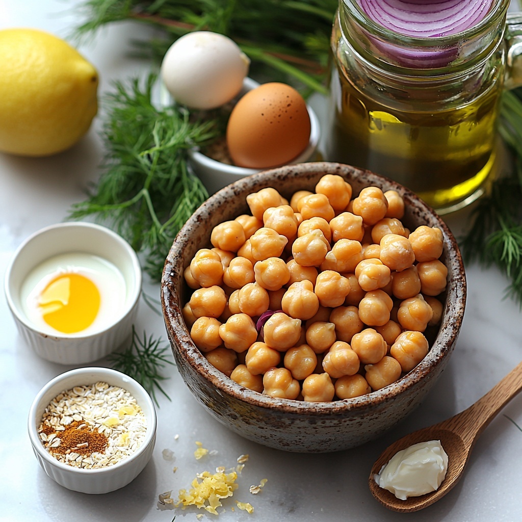 Start by lightly mashing the rinsed chickpeas in a bowl, leaving bits whole to add pleasant texture to your patties. Stir in the red onion, garlic, parsley, and dill if you’re using it, then add the lemon zest and juice to brighten the flavors instantly. Incorporate the breadcrumbs, spices, and season generously with salt and pepper. Finish by adding the egg or flax egg to bind the mixture gently but effectively.