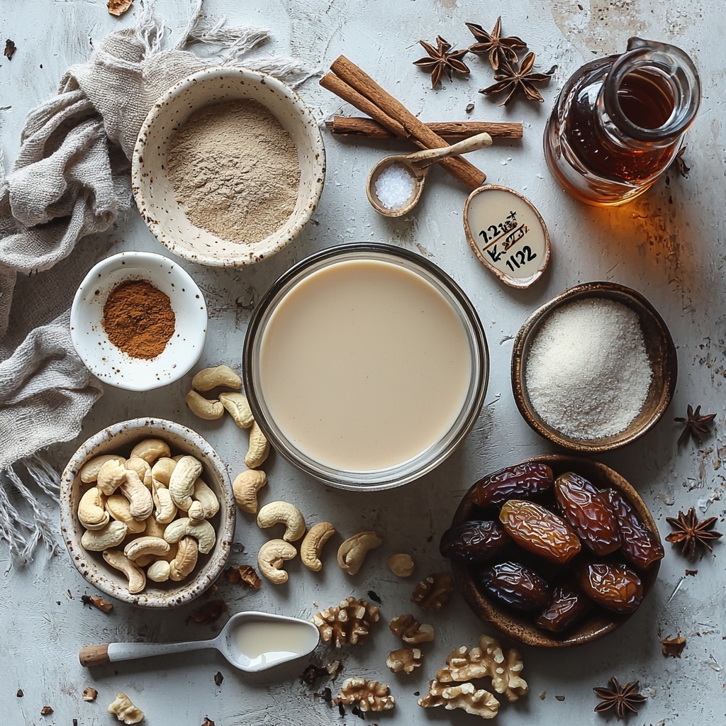 - Blend Ingredients: In a blender, combine the soaked cashews, unsweetened almond milk, your choice of sweetener (either Medjool dates or maple syrup), ground cinnamon, nutmeg, optional ground cloves, vanilla extract, a pinch of sea salt, and the optional thickener (cornstarch or arrowroot powder). Blend until the mixture is completely smooth and creamy.