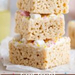 - Cool and Slice: Allow the treats to cool at room temperature for 15-20 minutes. Once set, slice into 12 equal portions. Top with extra vegan mini marshmallows and vegan sprinkles if desired.